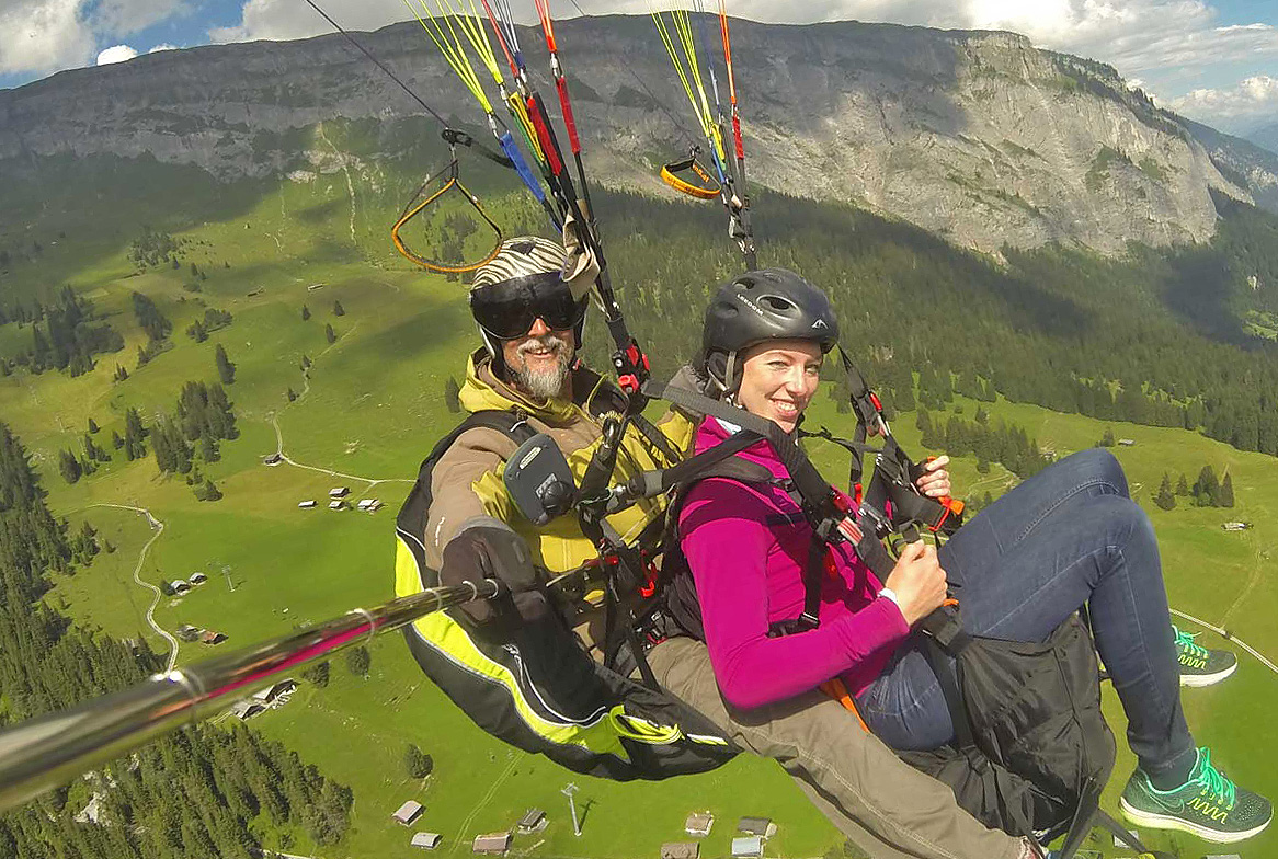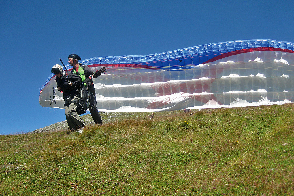 Unsere Piloten sind langjährige Tandemprofis und Gleitschirminstruktoren. Wir fliegen ausschließlich mit geprüftem Material, gewartetem Rettungsgerät und unter den allgemeinen Auflagen des Bundesamtes für Zivilluftfahrt (BAZL, LBA). Unsere Piloten sind ausbildungstechnisch auf dem neusten Stand und werden regelmäßig weitergebildet. Unser hauseigenes Sicherheitstraining ist einer der umfangreichsten und professionellsten Weiterbildungskurse weltweit. Der jährliche Besuch solcher Kurse ist für unsere Tandempiloten Pflicht. Sie können sich ihrem Tandempiloten bedenkenlos und vollumfänglich anvertrauen, denn es gibt nur wenige die diesen Sport so gut beherrschen wie sie!