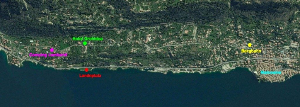 Die Übernachtung vor Ort wird ebenfalls vom Teilnehmer selbst organisiert. Die Auswahl an Hotels und Campingplätzen sind vielfältig. Logistisch sinnvoll ist nebst dem Hotel Garni Orchidea der Camping Lombardi. Für Informationen und Buchungen empfehlen wir folgende Website des Tourismusverbandes Malcesine. Das Briefing wird im Orchidea abgehalten. In der Regel gehen wir am Abend gemeinsam essen, daher lohnt es sich nicht Halbpension zu buchen.