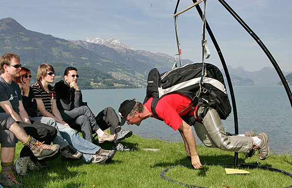 Danach fahren wir zum Landeplatz für die Landeplatz- und Fluggebietseinweisung. Es empfiehlt sich Fahrgemeinschaften zu bilden, da ein Parkschein gelöst werden muss (ca.CHF 7,00 pro Tag).