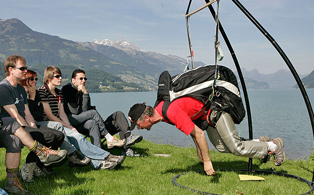 Bitte benutze während des Trainings deinen eigenen Gleitschirm. Es geht bei einem Sicherheitstraining primär darum deine eigenen Fähigkeiten wie auch die Eckdaten deines Schirmes kennenzulernen. Es macht wenig Sinn, Schirme in einem Sicherheitstraining testzufliegen. Die erflogenen Manöver sollten nicht zur Kaufentscheidung dienen, bzw. es ist wichtiger NACH dem Schirmkauf die Manöver kennenzu- lernen, um die speziellen Eigenschaften des Schirmes zu beherrschen. Beachte, dass der Schirm einen gültigen Check aufweist. Piloten welche über die sicherheitsrelevanten Manöver hinaus trainieren wollen und Freestyle-Manöver erlernen wollen, sollten den Freestyleschirm UND den Standardschirm mitbringen. Es kann sein, dass wir gewisse Manöver aus sicherheitstechnischen Gründen zuerst mit dem Standardschirm erfliegen. Umgekehrt werden wir einige dynamische Manöver nur mit entsprechend dynamischen, kleinen Schirmen trainieren. - Rettungsgerät